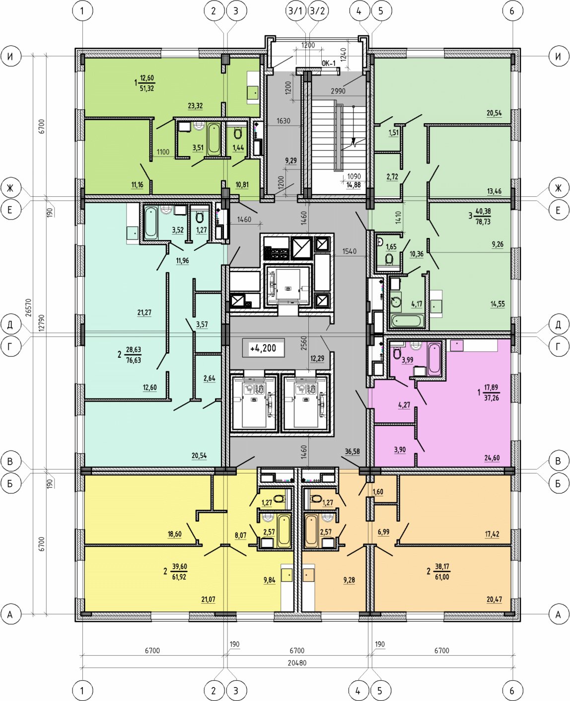 Аналогично основным модулям проектируются модули повышенной заводской готовности: лестнично-лифтовые узлы, лоджии, эркеры, входная группа и т.д.