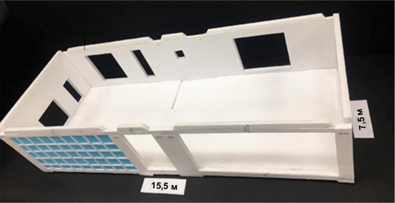 Основной крупногабаритный модуль представляет собой прямоугольную замкнутую пространственную конструкцию, собираемую на заводе-изготовителе из плоских элементов. Предельные габаритные размеры модуля: продольный - 15,5 м; поперечный - 7,5 м; высота - 3,55 м.