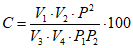 Объемную долю двуокиси углерода (C) в процентах вычисляют по формуле