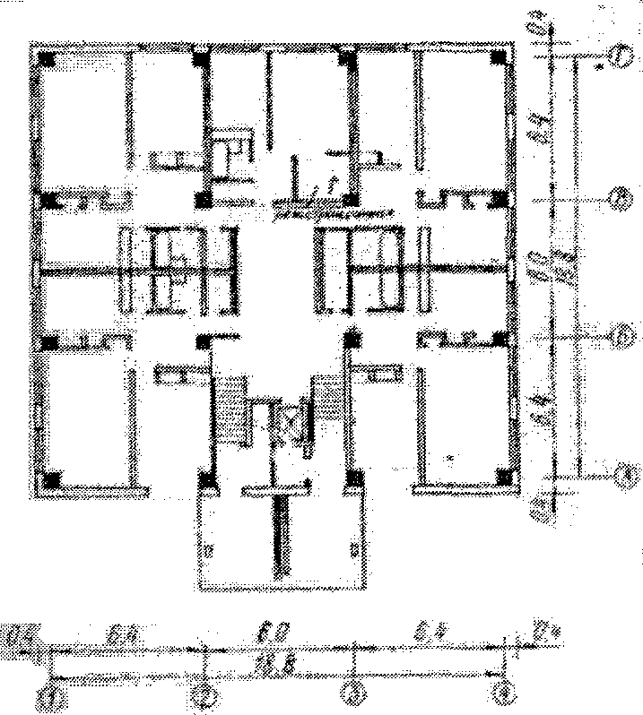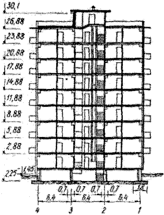 2.6. На зданиях крупнопанельных, крупноблочных, каркасных, из монолитного железобетона, кирпичных, каркасных железобетонных с навесными панелями и каркасно-панельных с симметрично расположенными диафрагмами высотой более 6 этажей при отношении длины здания к его ширине не более 3 размещение измерительных пунктов рекомендуется осуществлять по схеме, изложенной в