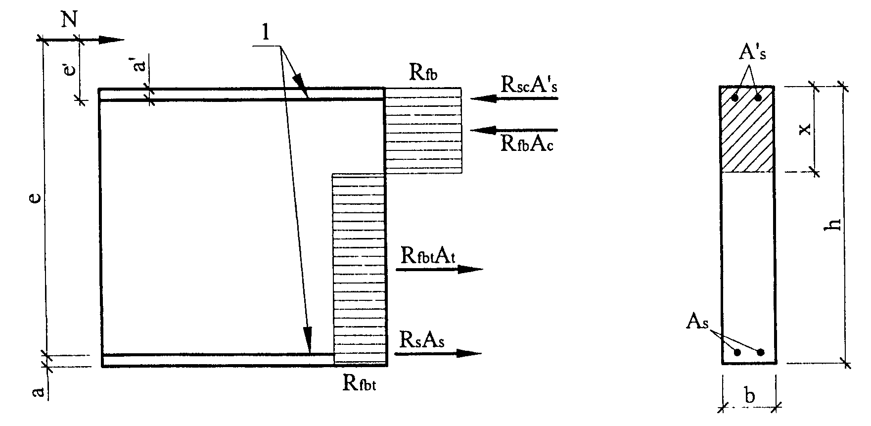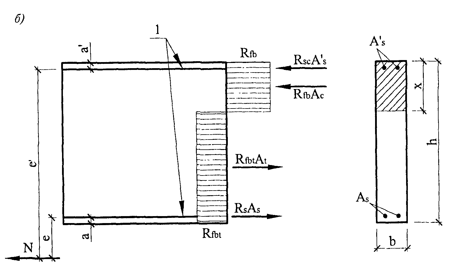 в остальных случаях работающих на сжатие, при расположении продольной сжимающей силы за пределами поперечного сечения элемента, а также работающих на изгиб, когда их разрушение не представляет непосредственной опасности для жизни людей, исправности и сохранности оборудования, т.е. в случаях экономической ответственности конструкций при целесообразности фибрового армирования.