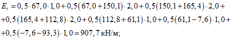 Результаты подсчетов ординат эпюры горизонтальной составляющей давления грунта