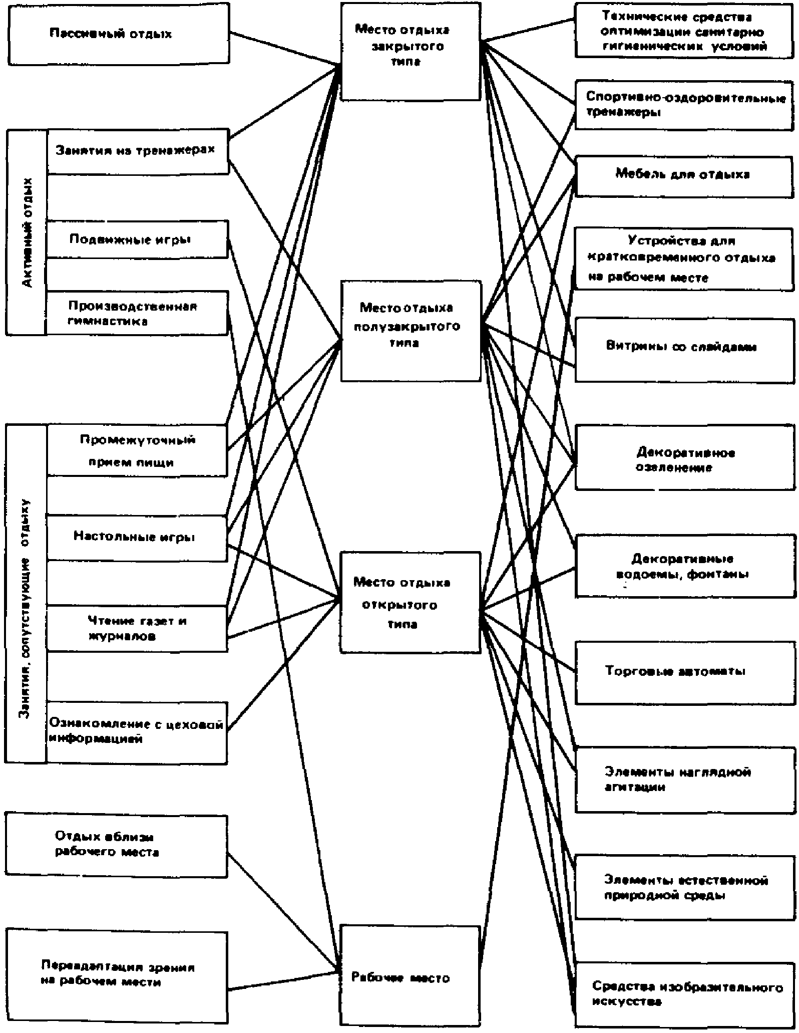 1.4. Форма проведения отдыха определяется характером труда. Архитектурная организация мест отдыха в производственных зданиях должна способствовать созданию оптимальных условий для проведения кратковременных перерывов на отдых, компенсируя при этом воздействие неблагоприятных факторов, оказывающих на человека в процессе труда: