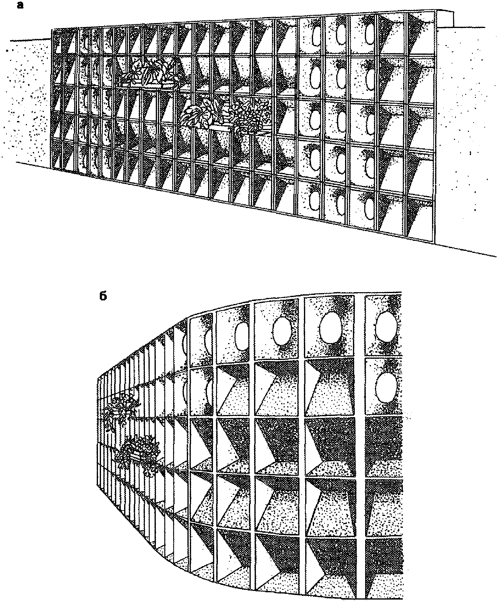 а - ограждения из сборных элементов высотой 1 м;