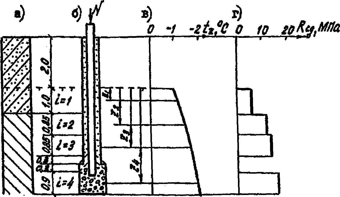 3.2. Применение свай с уширенной пятой позволяет намного повысить передаваемые на них нагрузки за счет более полного использования несущей способности торца, что имеет важное практическое значение при строительстве на пластичномерзлых и засоленных грунтах, где прочность смерзания свай по боковой поверхности с грунтом, как правило, не обеспечивается.
