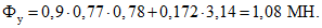 = 0,9·0,77·0,78 + 0,172·3,14·0,9 = 1,03 МН.