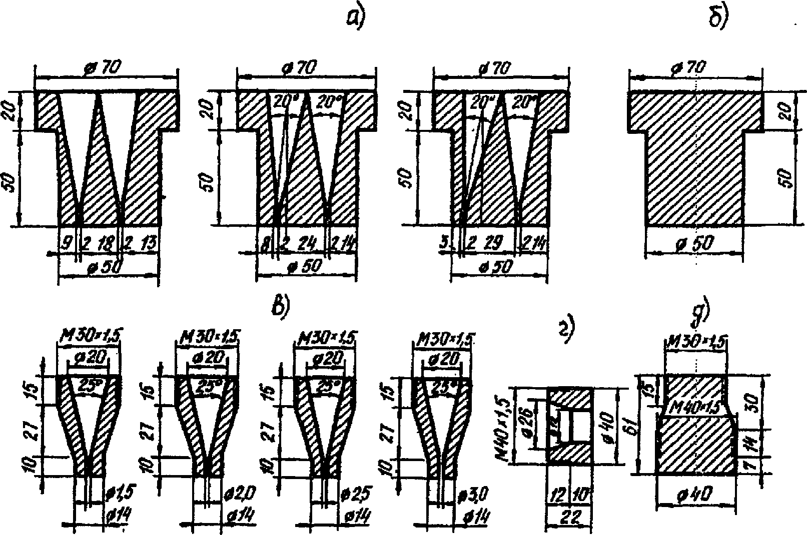 сопел 1,5; 2; 2,5; 3 мм (2 шт.); г - воздушный