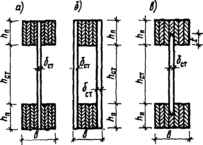 рис. 23, в). В этом узле к сплошному элементу нижнего пояса подходят подкос Д и раскос Д
