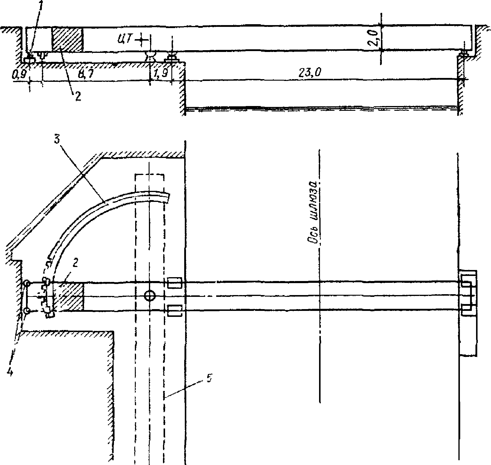 4 - замковый механизм; 5 - световой сигнал для судоходства