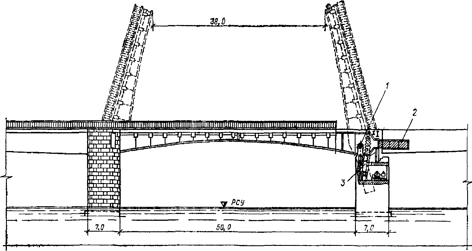 3. Для двукрылого раскрывающегося моста за массу пролетного строения следует принимать массу одного крыла.