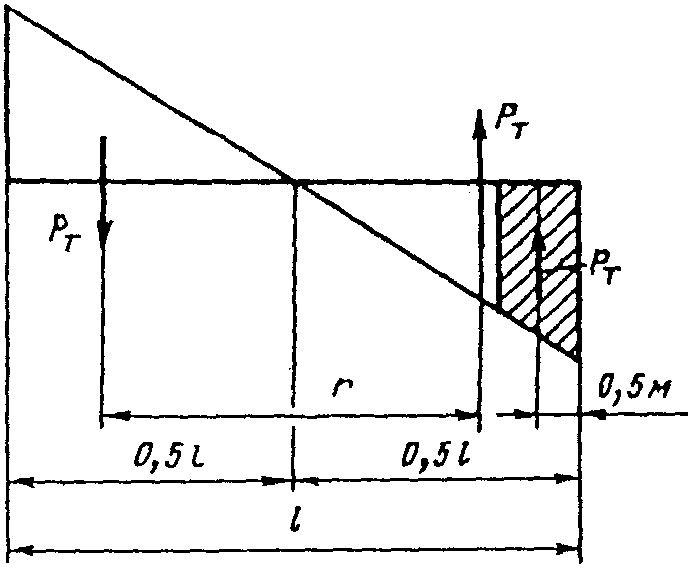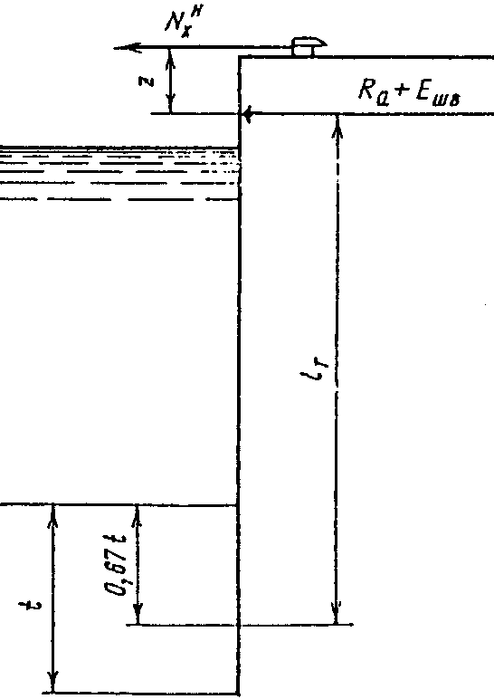 Подбор арматуры сваи, работающей на растяжение, выполняется аналогично. При подъеме сваи за одну точку расчетная схема представлена на рис. 13. Момент и поперечная сила на консоли при