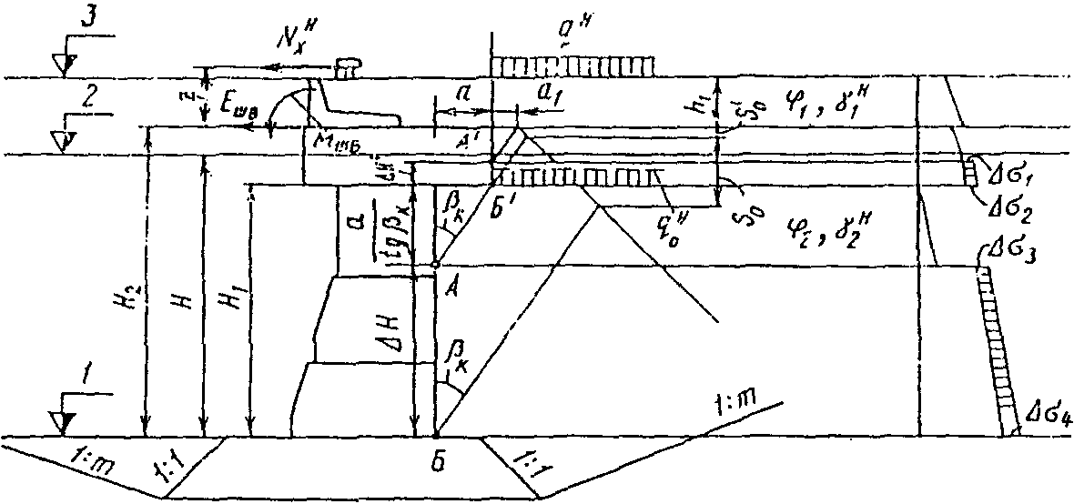 д) геологические и гидрогеологические (геологические профили, физико-механические характеристики грунтов основания и засыпки, сведения о грунтовых водах и их агрессивности);