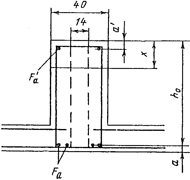 Расчет на прочность выполняем в предположении, что сжатая зона сечения высотой x <= 2a' обеспечена работой бетона, арматура