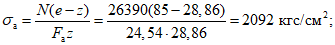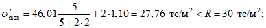 Расчет сечения на прочность производим с учетом арматуры, расположенной в сжатой зоне, когда x > 2a'. Считаем, что 5 стержней расположено в растянутой зоне и 3 стержня - в сжатой: