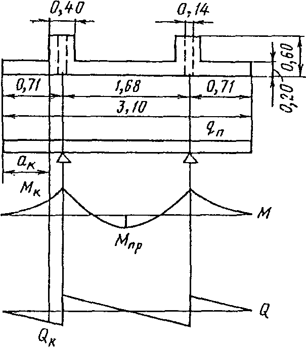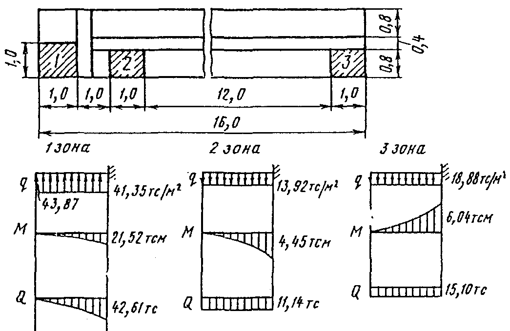 Расчетная схема представлена на рис. 12. Момент и поперечная сила на консоли при