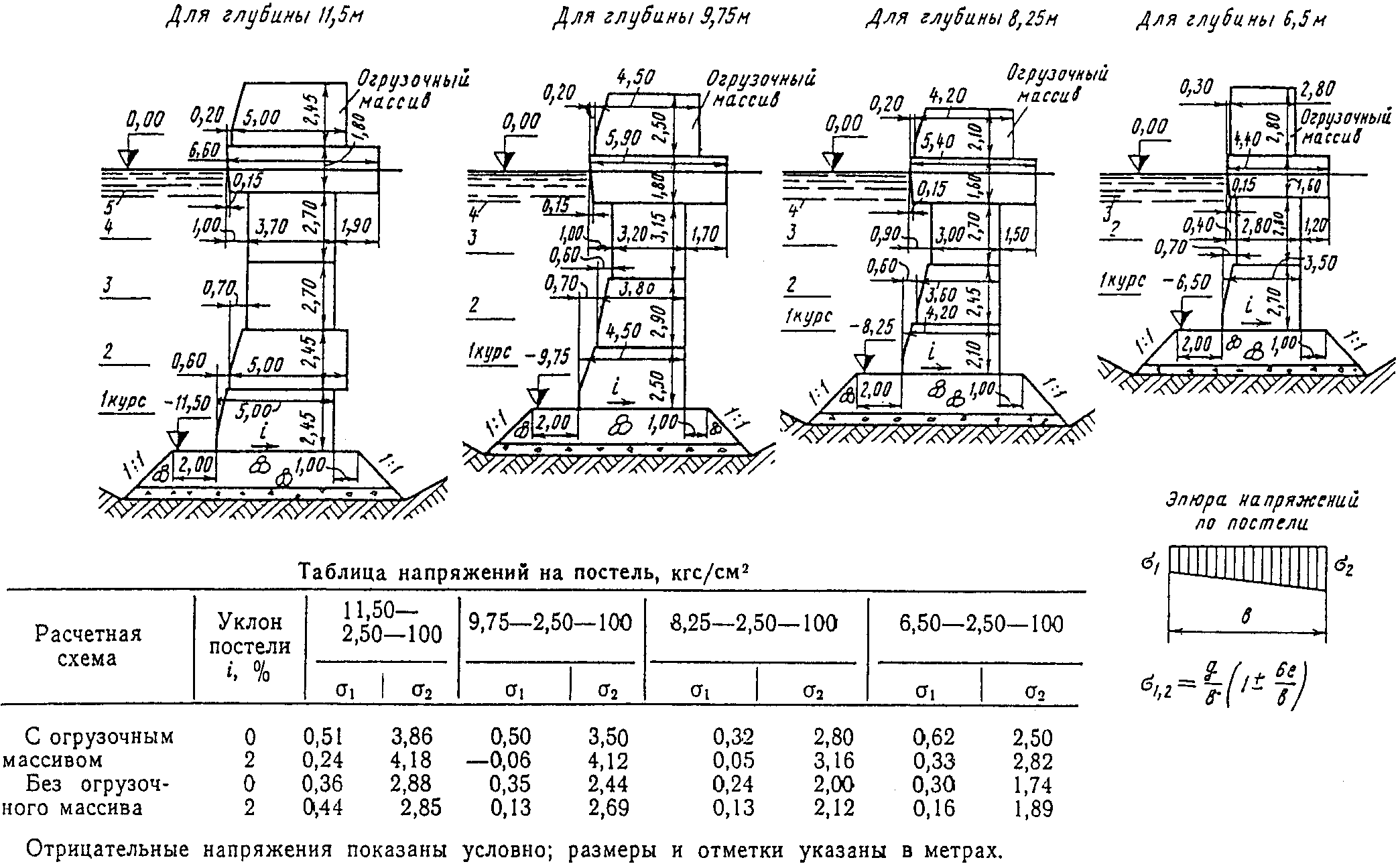 Примечания. 1. При проектировании морских причальных сооружений надлежит с учетом указаний Руководства соблюдать требования, предусмотренные главой СНиП и стандартом СЭВ "Основные положения по проектированию и по расчету строительных конструкций и оснований", требования других соответствующих нормативных документов, утвержденных или согласованных Госстроем СССР, а также утвержденных Союзморниипроектом или Минморфлотом (см.