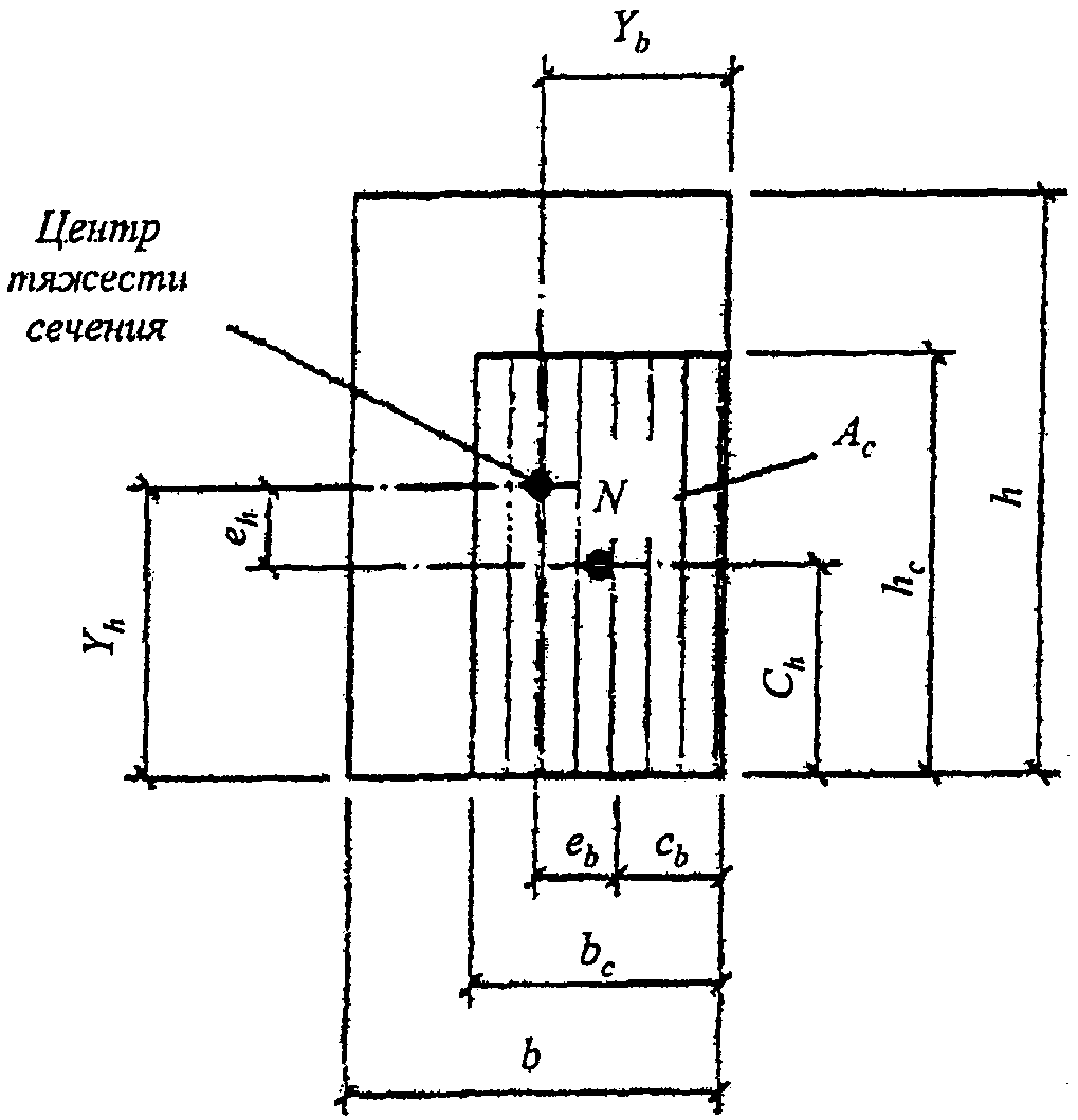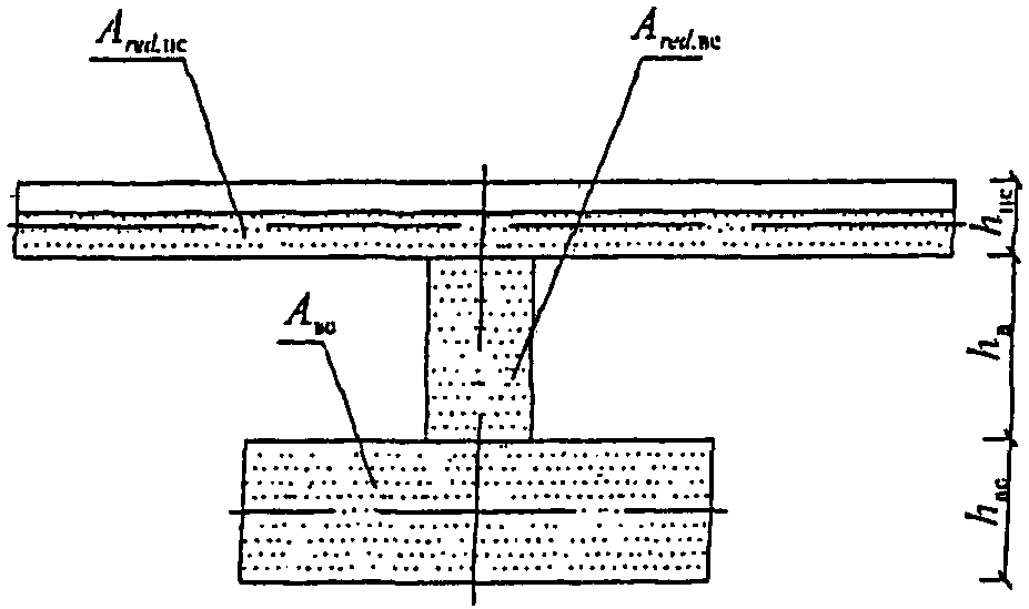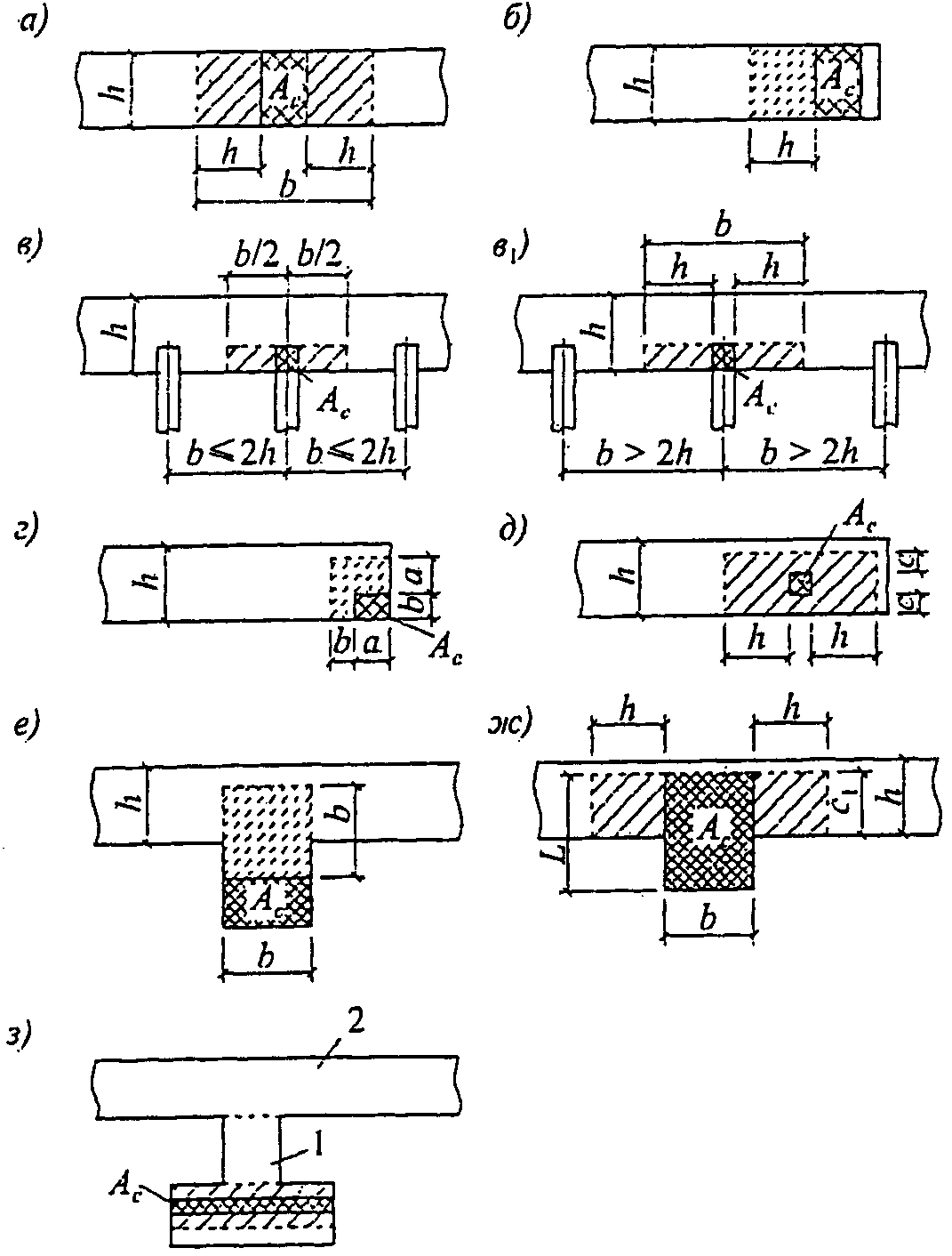 Если толщина стены меньше 0,1 высоты сечения пилястры, то сечение рассматривается как прямоугольное без учета примыкающих участков стены.