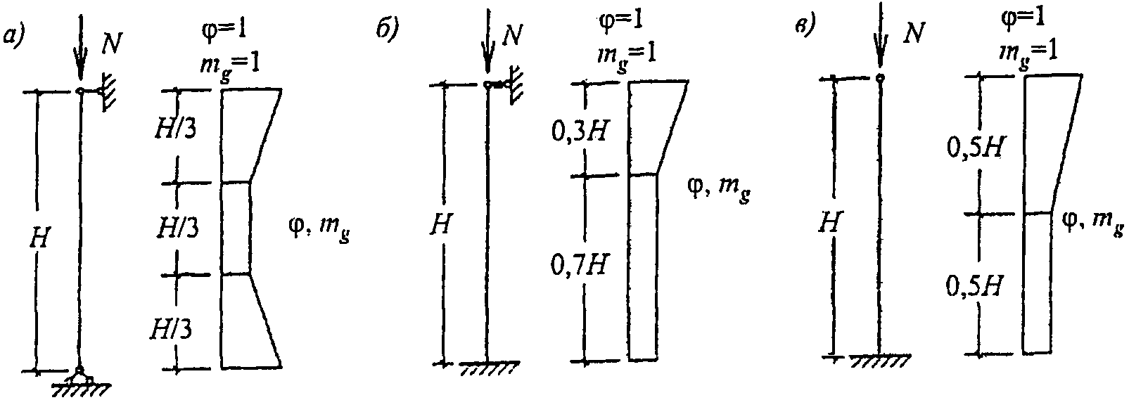 Г.6 При упругих опорах производится расчет рамной системы, стойками которой являются стены и столбы (железобетонные, кирпичные и др.), а ригелями - перекрытия и покрытия, которые рассматриваются как жесткие распорки, шарнирно связанные со стенами. При упругих опорах принимается, что стойки заделаны в грунт в уровне пола здания (при наличии бетонного подстилающего слоя под полы и отмостки).