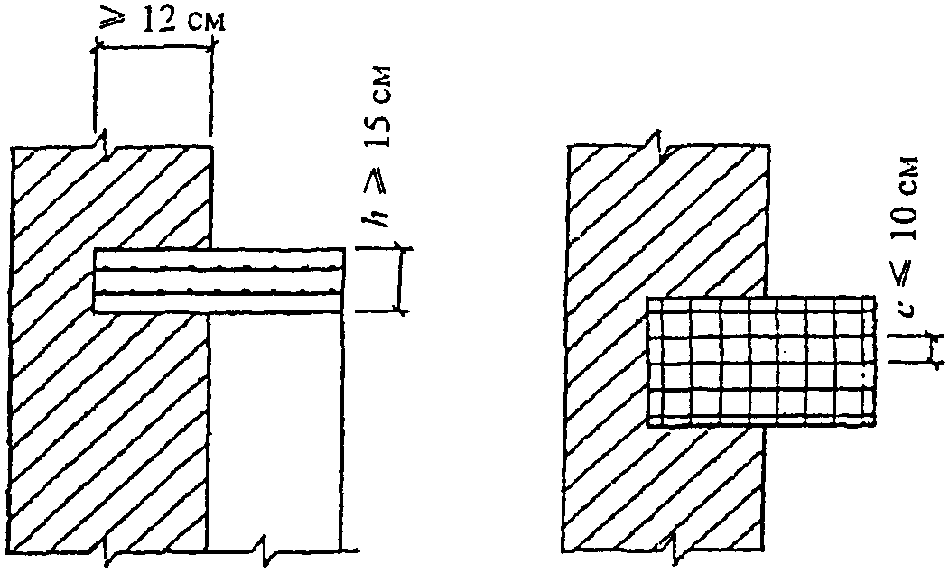 При различии наружных и примыкающих к ним внутренних стен по степени загрузки или выполнении их из различных материалов участки стен, близкие к местам их взаимного примыкания, должны быть рассчитаны по образованию и раскрытию трещин.