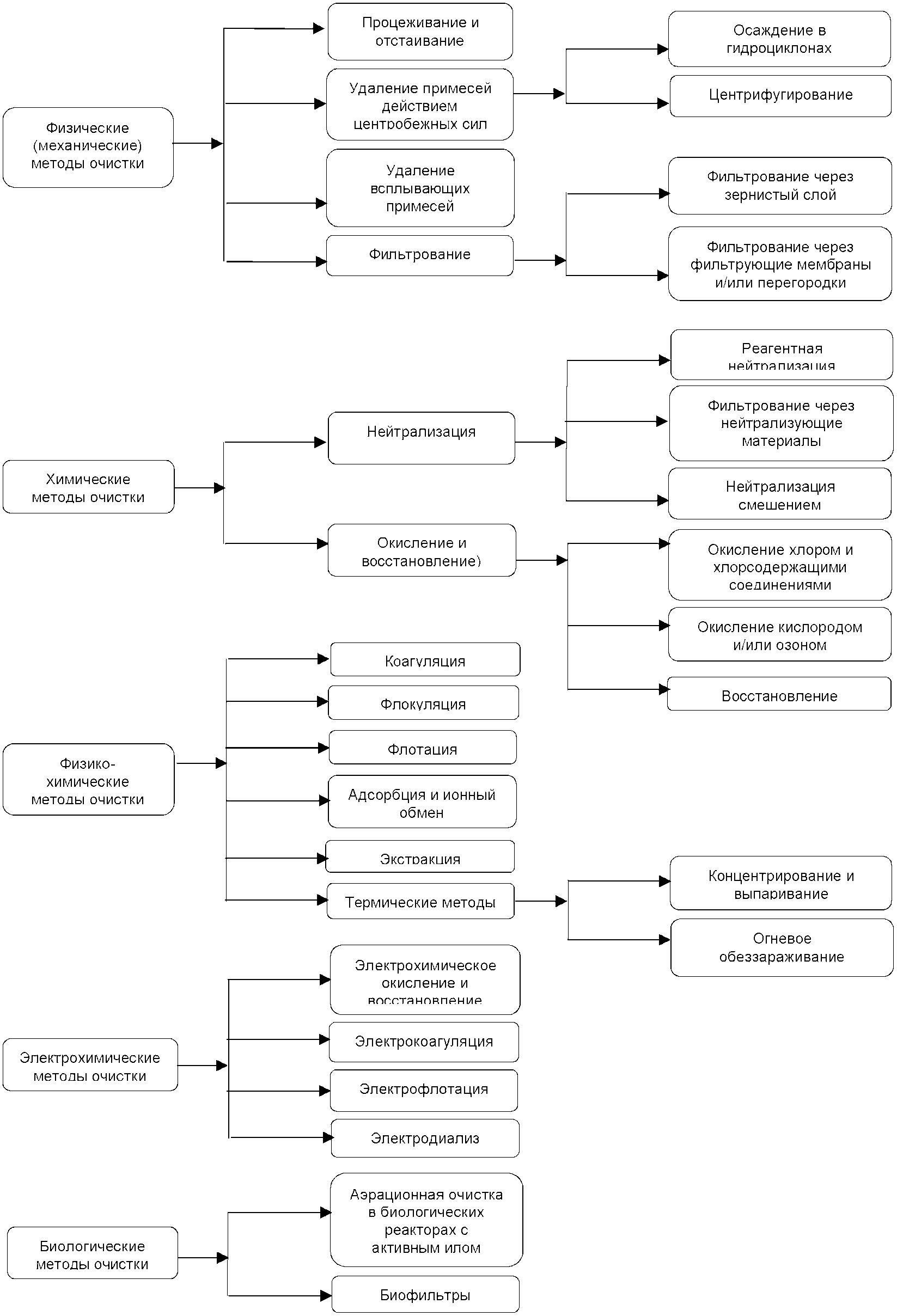 2.4 Подходы, методы, меры и мероприятия, направленные на очистку производственных сточных вод от основных загрязняющих веществ. В подразделе 2.4 приводится описание подходов, методов, мер и мероприятий, направленных на очистку сточных вод от взвешенных веществ, минеральных масел и нефтепродуктов, фенолов, солей тяжелых металлов, СПАВ, биогенных элементов, цианидов и мышьяка.