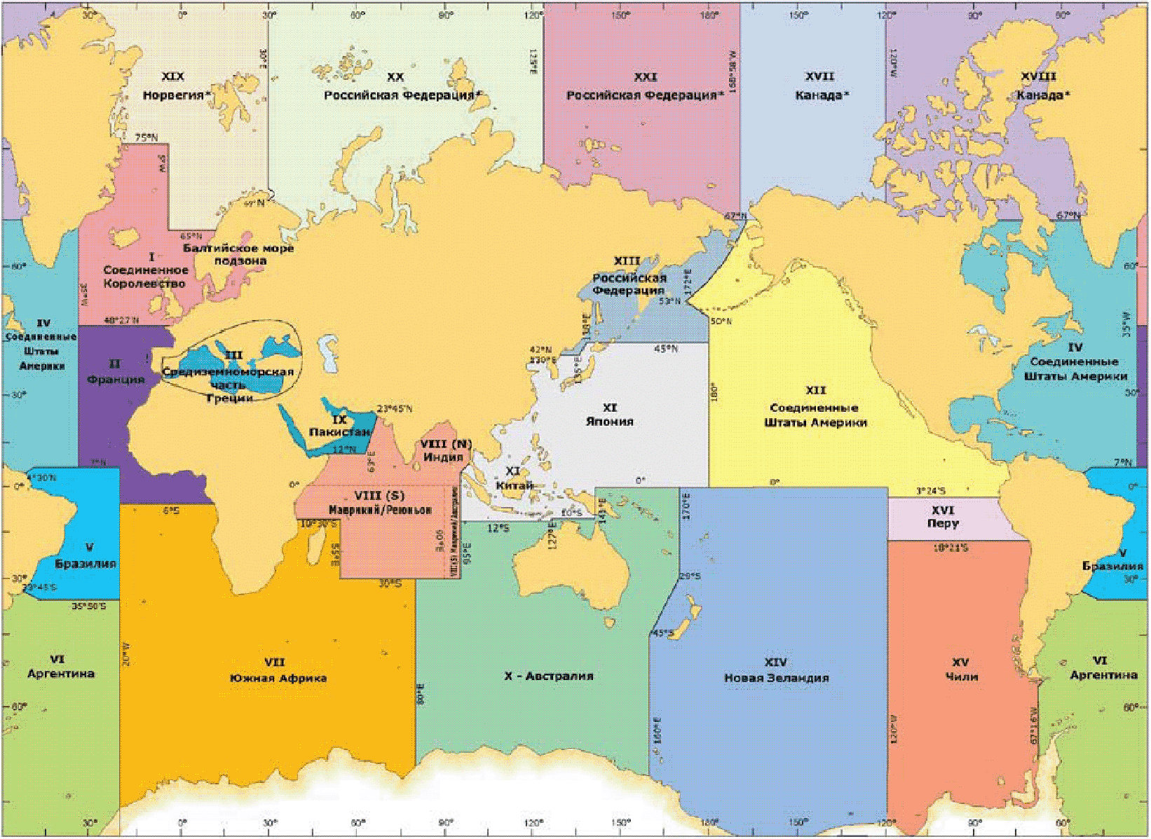 - МЕТЗОНА XV - южная часть Тихого океана и Южный океан к югу от 18°21' ю.ш. вдоль побережья Чили до долготы мыса Горн 67°16' з.д. и 120° з.д.;