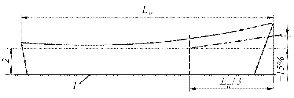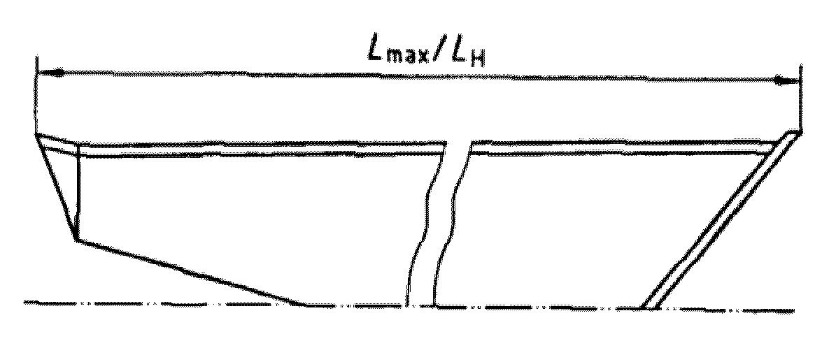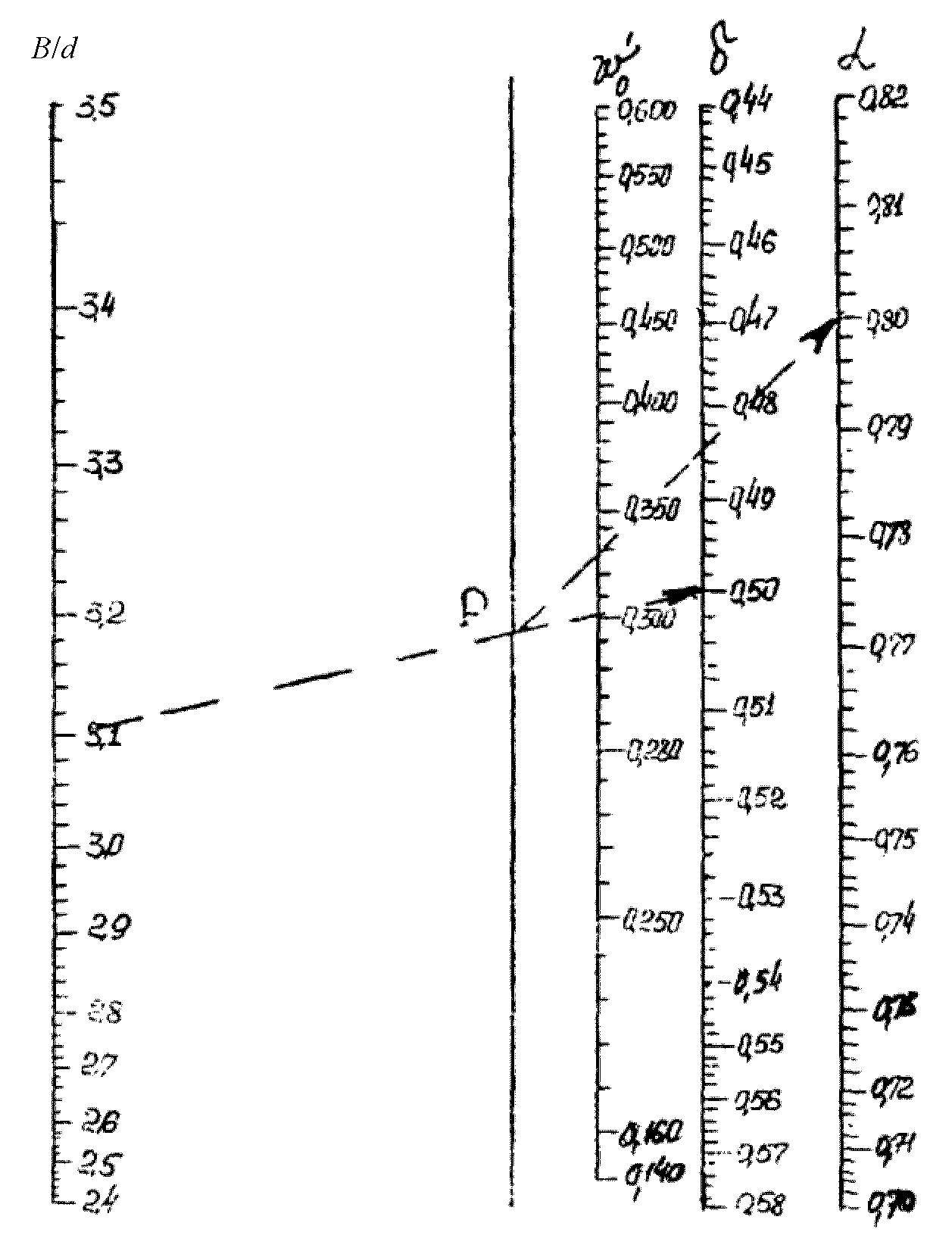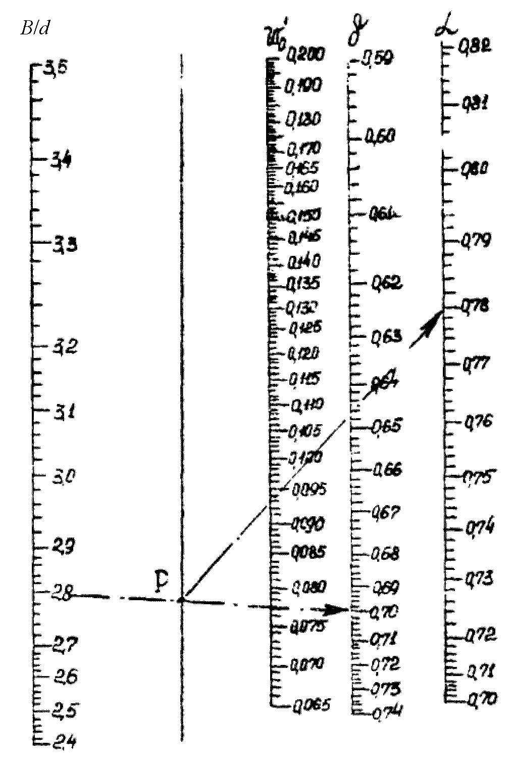7.2.1.3. Число Фруда определяется величиной отношения максимальной скорости судна V, м/с, к квадратному корню из произведения длины судна по конструктивной ватерлинии на гравитационную постоянную g = 9,8 м/с2.