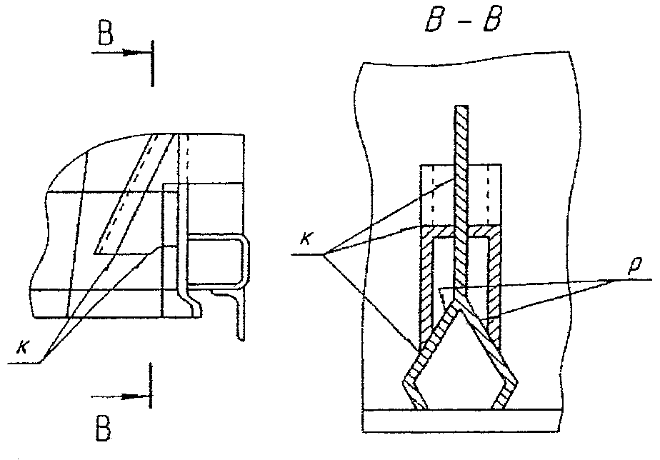 9.1.6. Изломанные подножки и поручни должны быть заменены в соответствии с конструкторской документацией данного типа вагона. Сварные и ослабшие заклепочные крепления заменять на болтовые с прихваткой гаек электросваркой.