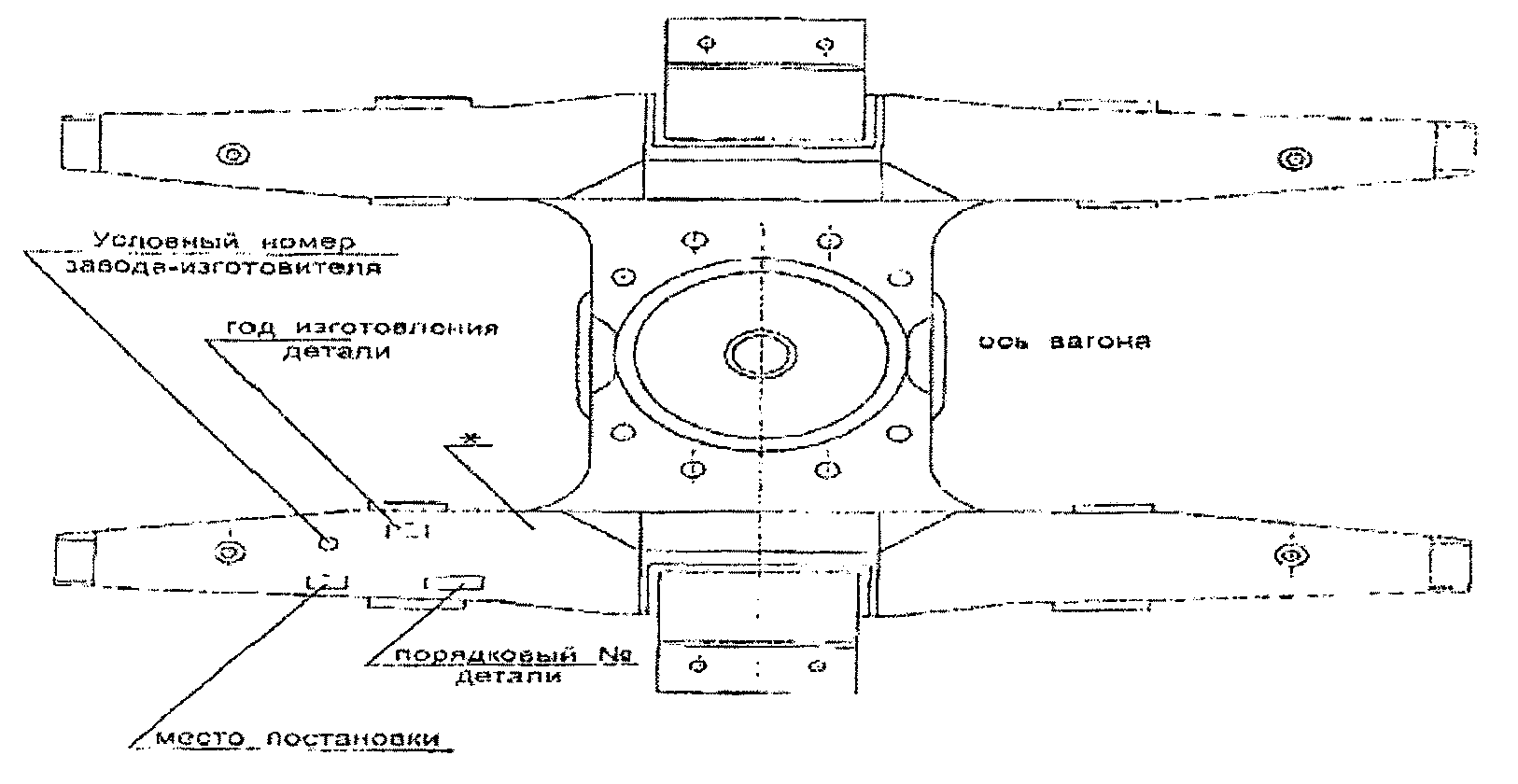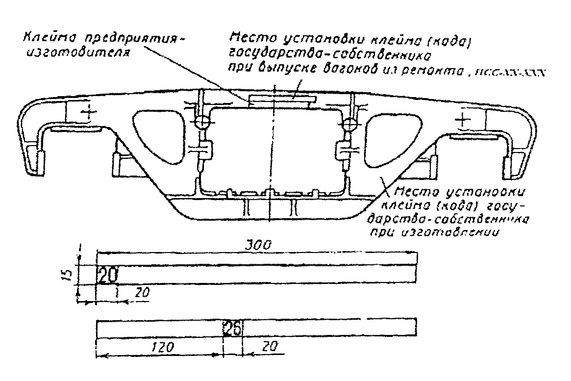 4.4. После ремонта и проверки клеймению подлежат: замок, замкодержатель, предохранитель, подъемник, валик подъемника, тяговый хомут, валик, РД ЦВ клин тягового хомута, ударная розетка, балочка центрирующего прибора, маятниковые подвески, упорная плита, корпус поглощающего аппарата, собранная автосцепка, вкладыш и поддерживающая плита центрирующего прибора.