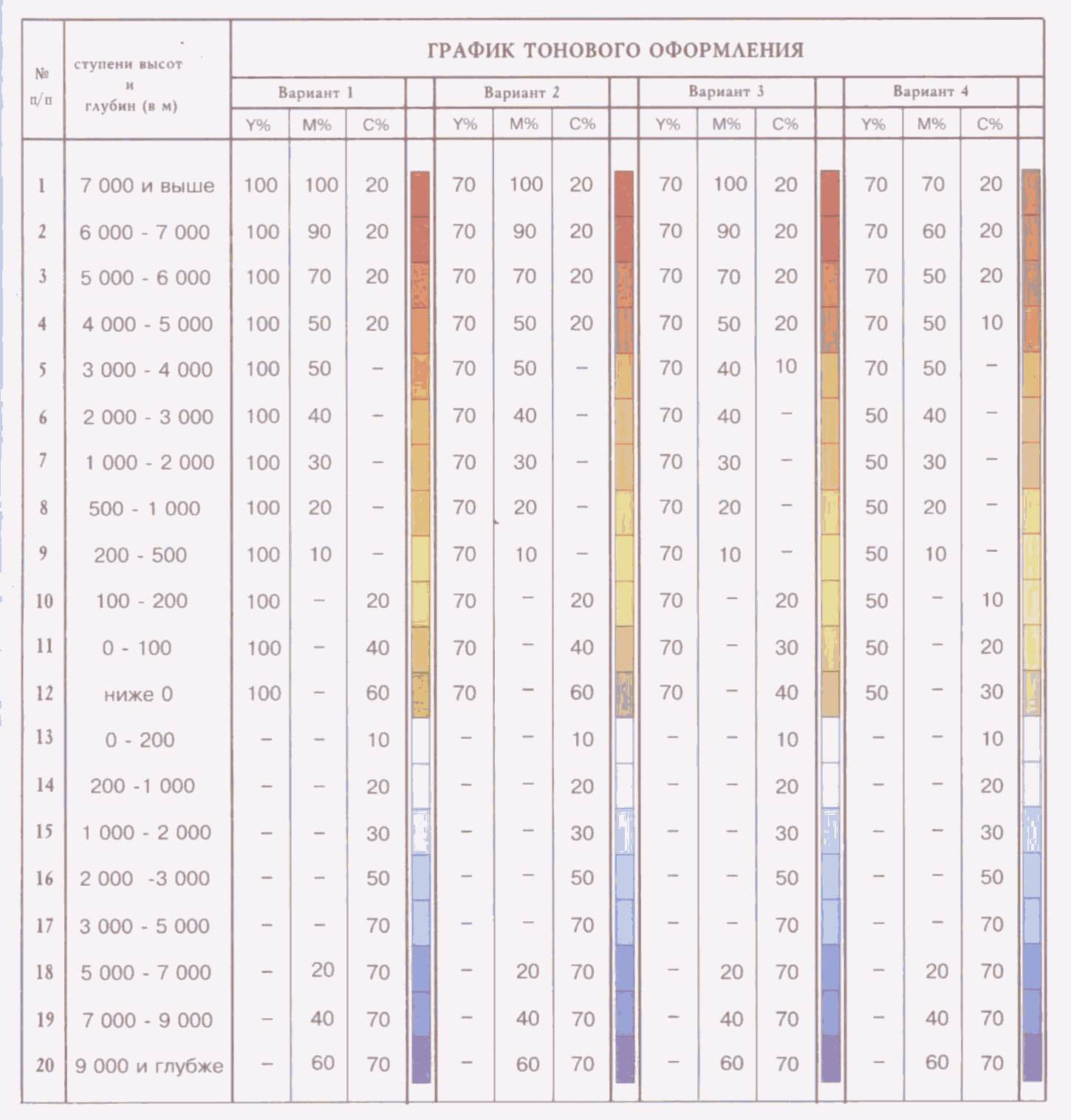 <*> Стандартная шкала отпечатана с использованием трехкрасочного синтеза полиграфической и картографической триад (всего 8 вариантов, которые прилагаются к Руководству).