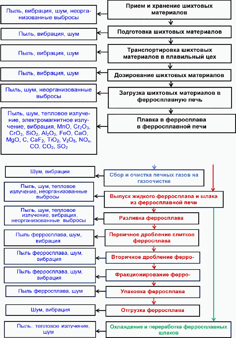 - производство ферросплавов, включая: ферросилиций, силикокальций, силикомарганец, электроферромарганец, ферровольфрам, ферромолибден, феррованадий, пятиокись ванадия, феррониобий, ферротитан, ферробор, силикоцирконий, феррофосфор, ферроманганофосфор, феррохром, ферросиликохром, ферросиликомарганец, ферромарганец, ферросплавы и лигатуры;