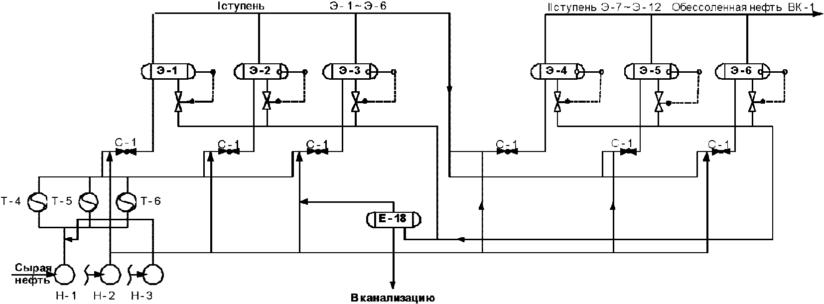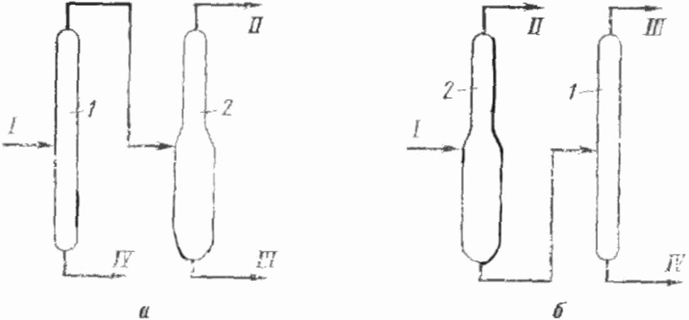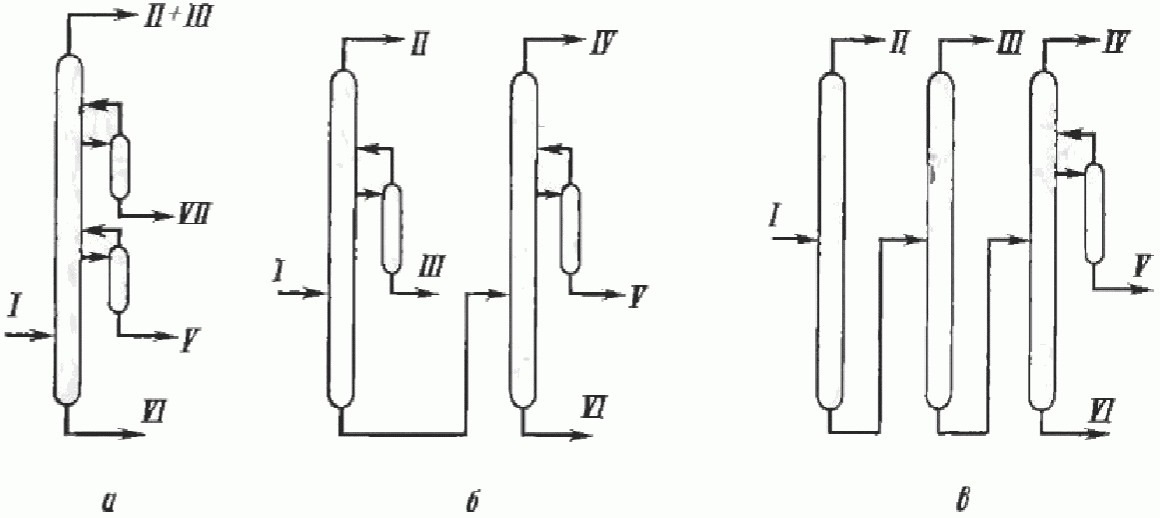 - Атмосферная перегонка с использованием двух отбензинивающих колонн - это процесс последовательной перегонки, позволяющий с минимальными суммарными затратами энергии разгонять нефти или конденсаты на углеводородные фракции, число и свойства которых оптимальны с учетом сложных схем НПЗ и ужесточающихся нормативов. Обычно эта технология рассчитана на применение на новых атмосферных или атмосферно-вакуумных установках, но может быть использована для ликвидации узких мест на существующих установках, например, для увеличения производительности процесса без добавления новой печи. Суммарное потребление первичных энергоресурсов для различных нефтей составляет 1,15 - 1,25 т топлива на 100 т нефти;