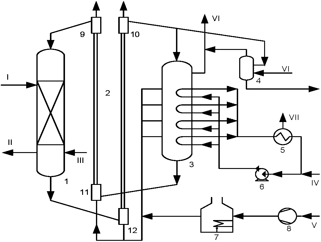 - Гидрокрекинг остаточного сырья в кипящем слое катализатора - Процесс H-Oil (лицензиар IFP Group). В реакторе с погруженным слоем катализатора осуществляется полное перемешивание трехфазной реагирующей системы и быстро достигается изотермичность режима при каких-либо колебаниях исходного сырья, что способствует стабилизации показателей качества продуктов в зависимости от принимаемой глубины конверсии. При общей степени превращения сырья 55 - 75% степень удаления серы в процессе H-Oil составляет 80 - 84%, а степень удаления металлов - 52 - 85%;