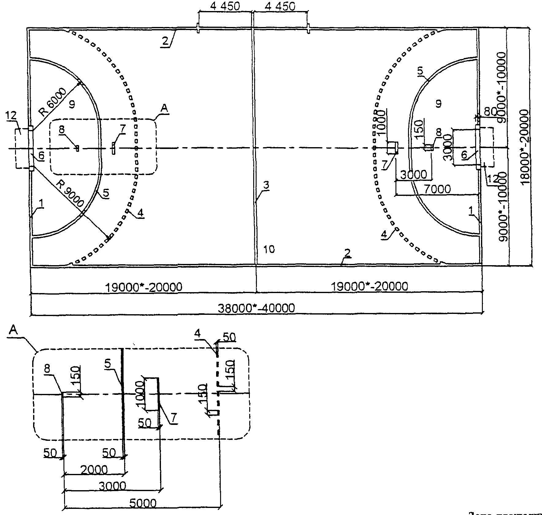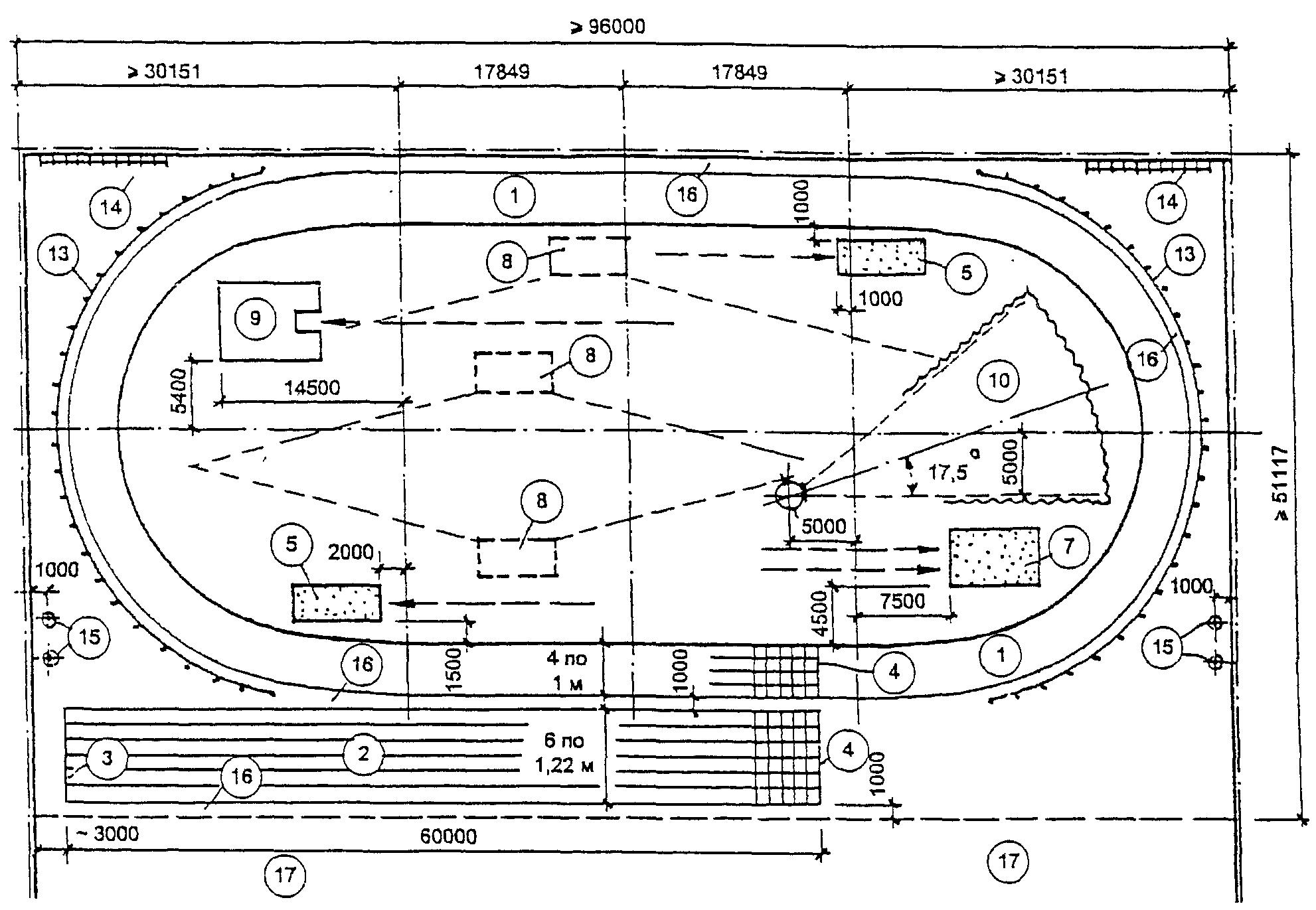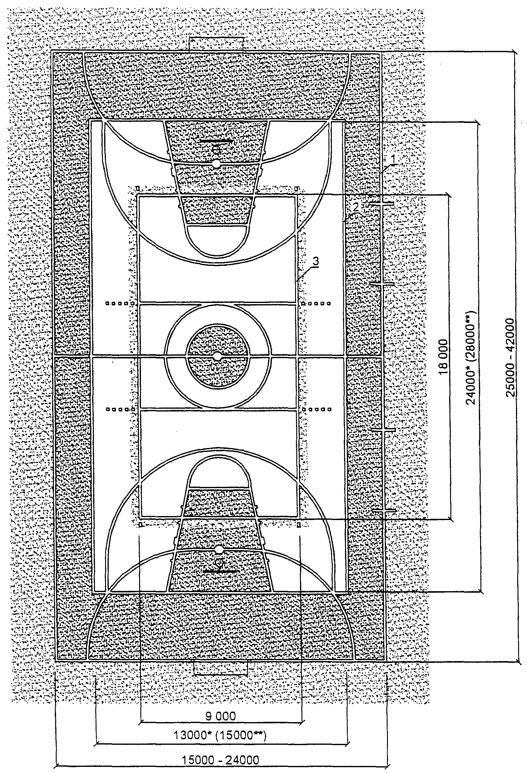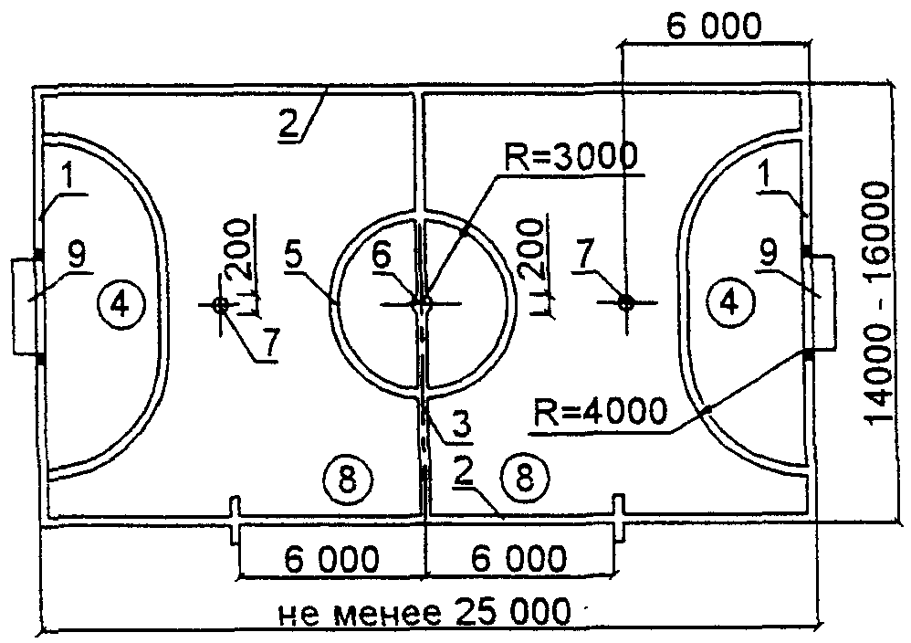 3.2. Размеры мест легкоатлетических занятий и игровых полей и их разметку следует принимать в соответствии с правилами соревнований. Разметка игровых полей дана на