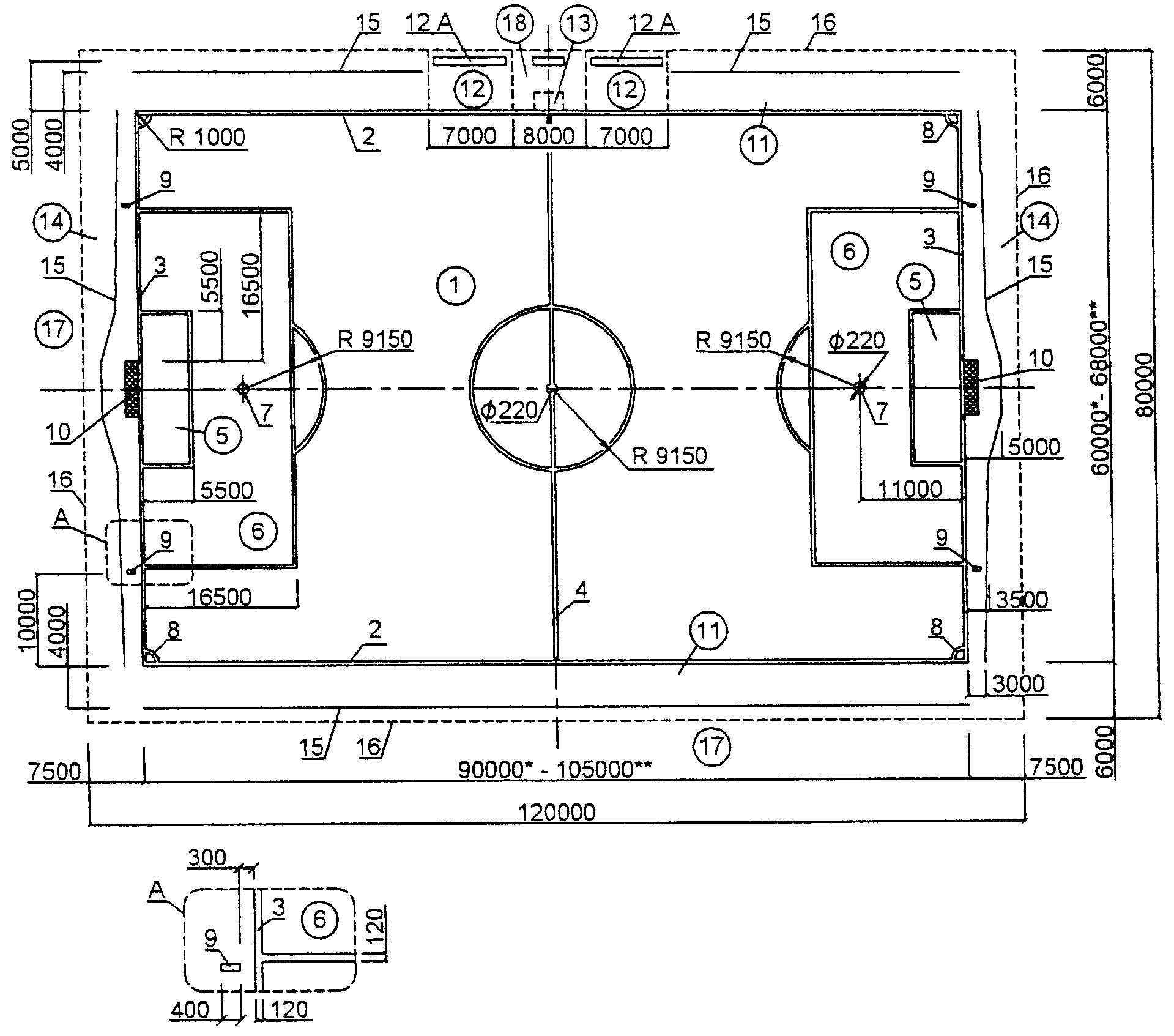 А - мягкая обивка стен (на высоту 3 м при батуте