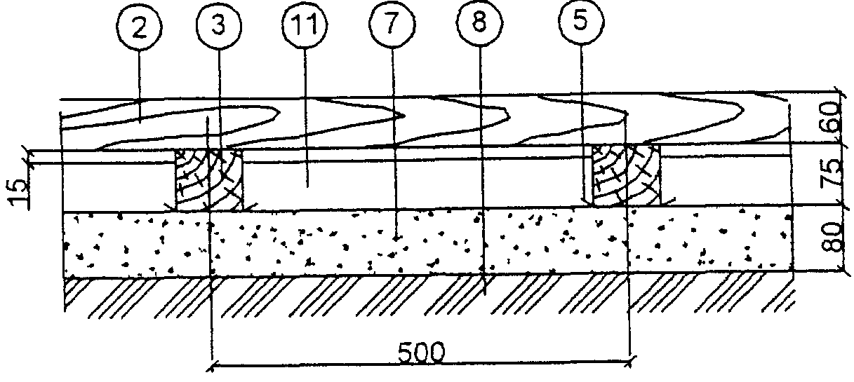 Схема 3. Брусчатый пол по лагам на грунте