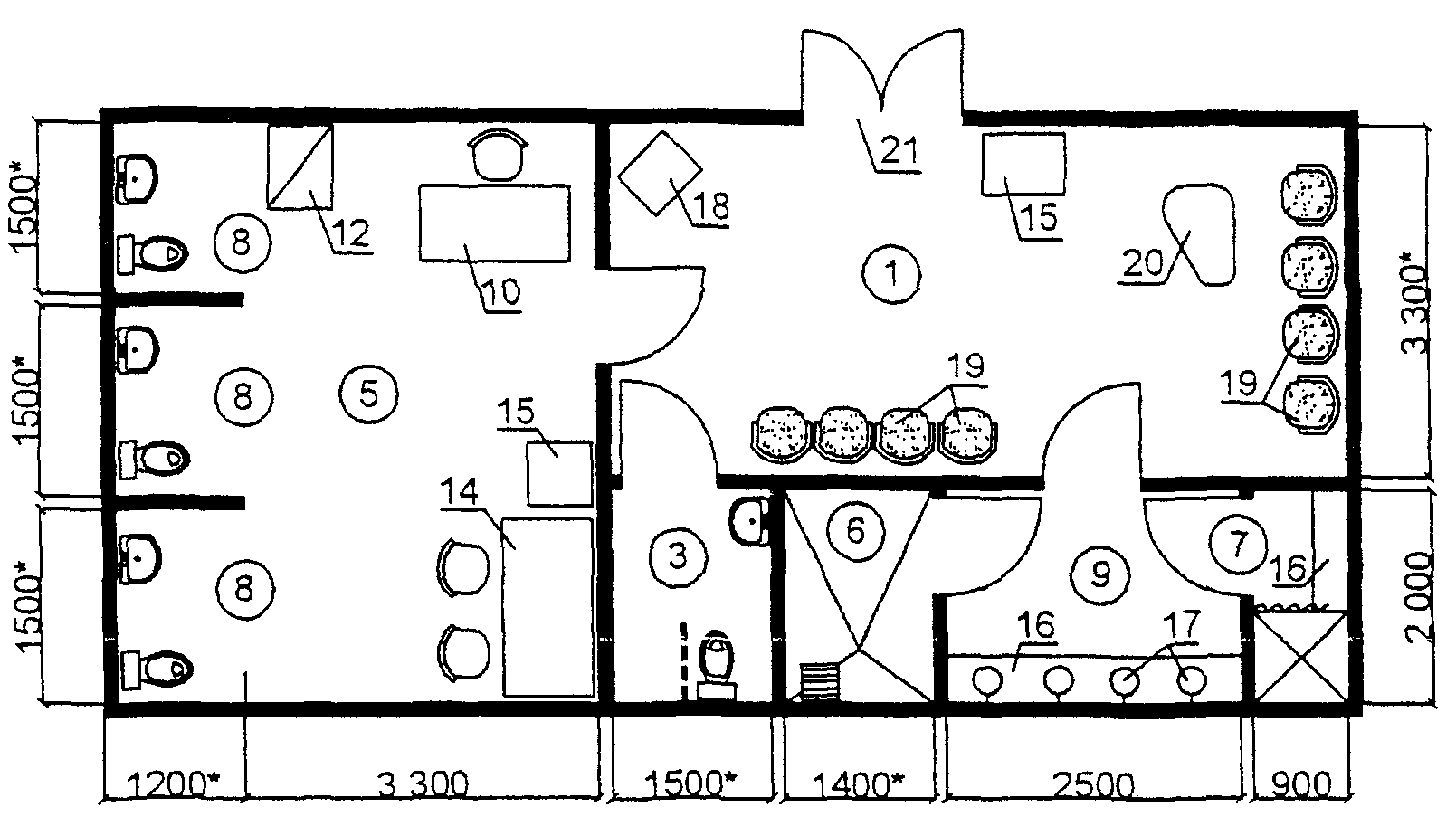 телефонный переговорный пункт; 7 - телетайпная;