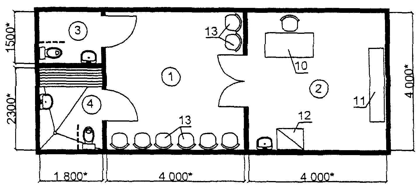 Составы и площади вспомогательных помещений принимаются в соответствии с положениями справочных пособий к