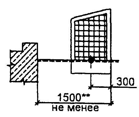 Удаление ванн открытого бассейна от красной линии должно быть не менее 15 м; от территории больниц, детских школьных и дошкольных учреждений, а также жилых домов и автостоянок - не менее 100 м.