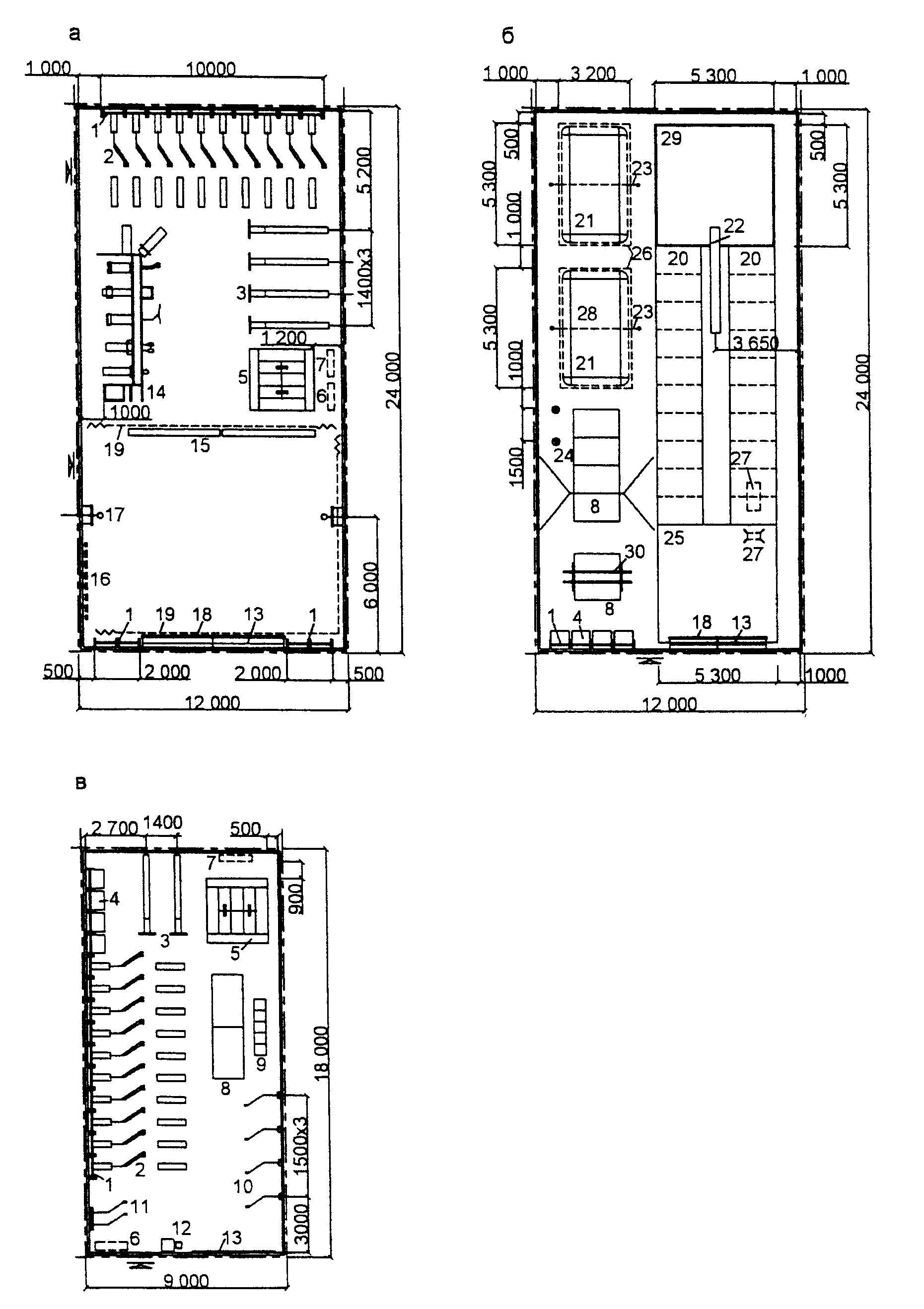 стороне, б - открытой по широкой стороне); 5 - одноярусные