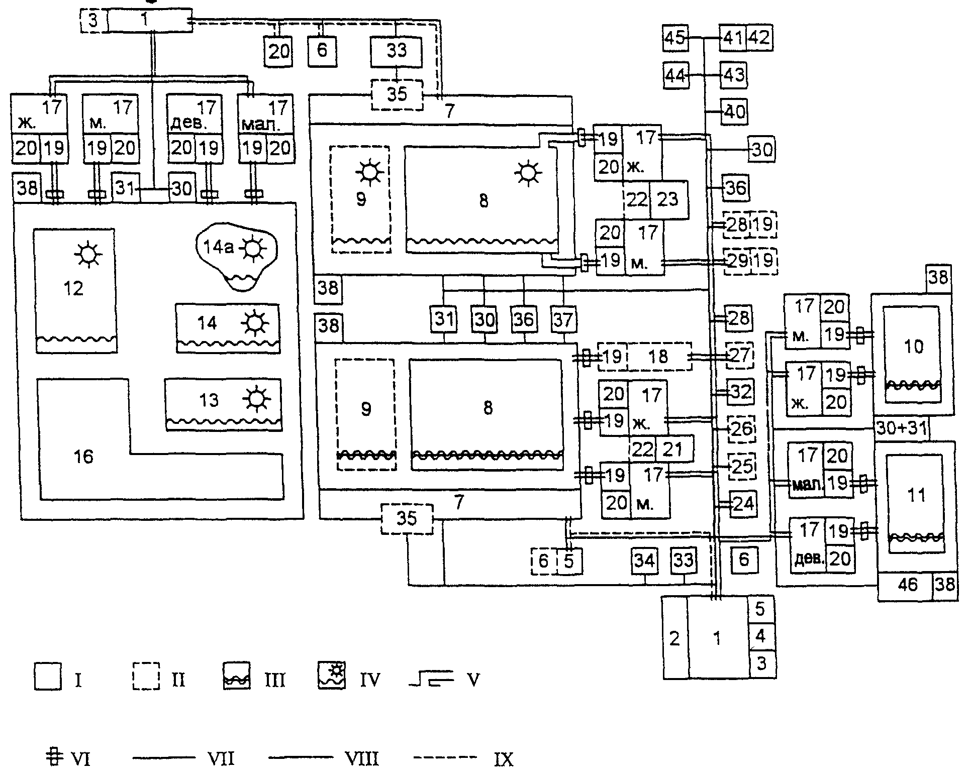 12 - открытая ванна круглогодичного действия; 13 - открытая