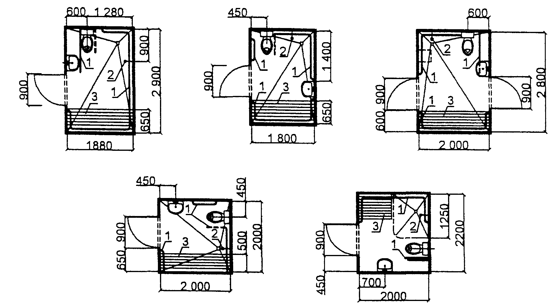 Рис. 5.6. Планировка душевых, санузлов и кабин
