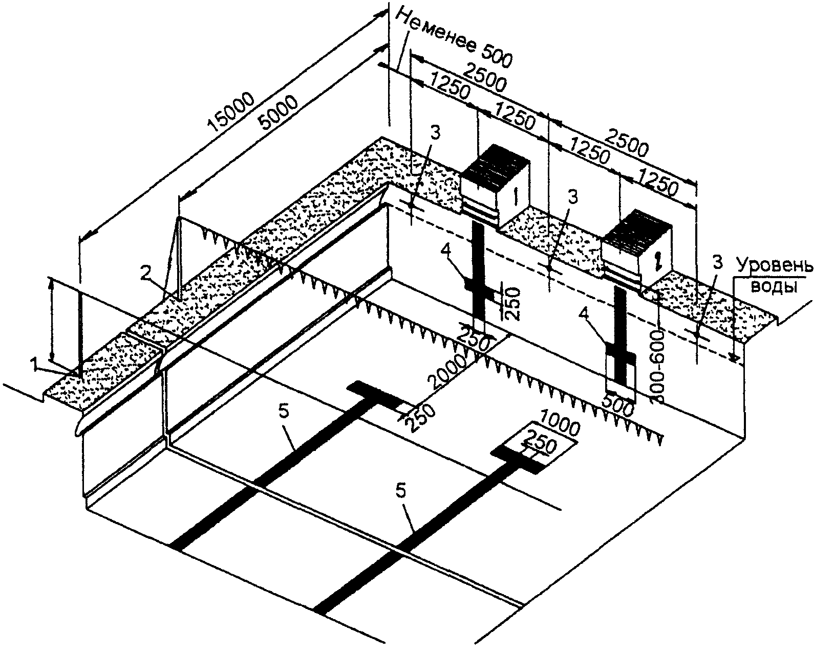 1 - переходной мостик; 2 - уровень воды; 3 - лестница;