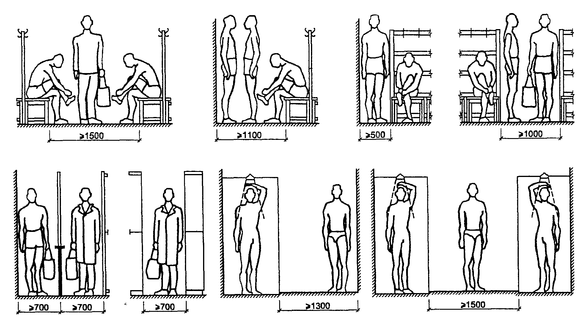 Рис. 5.3. Параметры функциональных зон в раздевальных