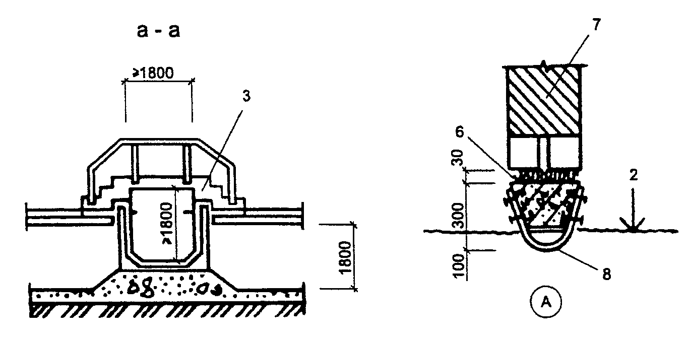 5 - плита перекрытия; 6 - уровень пола; 7 - трубы