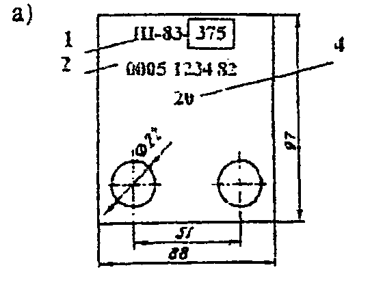 При выбивании на бирке и на стопорной шайбе правой шейки оси индивидуального номера колесной пары между условным номером предприятия-изготовителя черновой оси, порядковым номером черновой оси и годом изготовления оси допускается делать пропуск в размере одного знака. | ||||