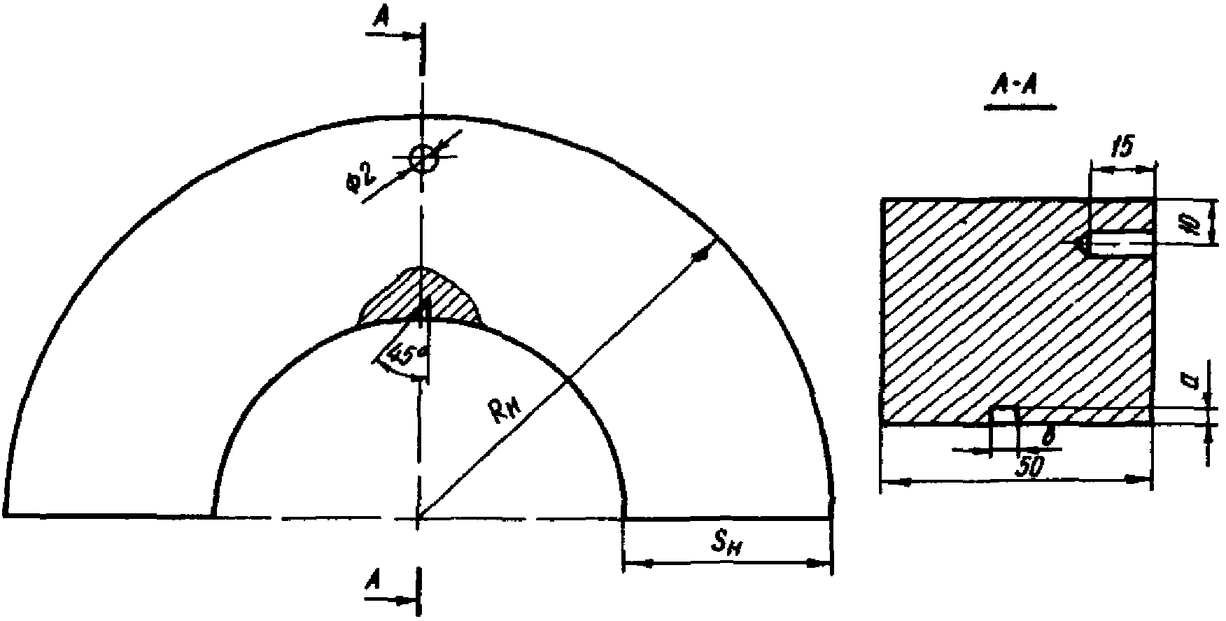 2.1. При контроле гибов с толщиной стенки до 30 мм на внутренней поверхности образца соответствующего размера изготавливается угловой отражатель ("зарубка"), при контроле гибов с толщиной стенки более 30 мм - отверстие диаметром 2 мм и глубиной 15 мм на боковой поверхности образца (см. рис. 16).