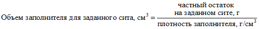 Расчет общих объемов всех заполнителей на каждом сите представлен в таблице А.5.