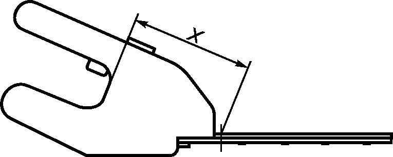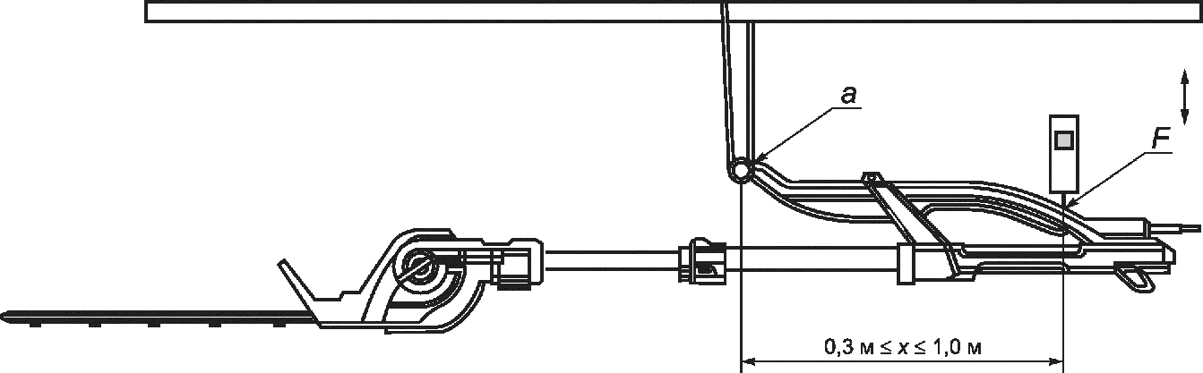 Прилагаемое к задней рукоятке усилие, необходимое для поддержания кустореза со штангой в горизонтальном положении при подвешивании его на передней рукоятке или поверхности захвата, в соответствии с