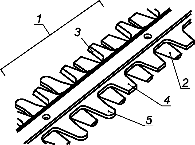 режущее лезвие (cutter blade): Часть режущего механизма, имеющая зубья, которые выполняют резание при движении либо относительно зубьев другого режущего лезвия, либо относительно ножевого полотна, неподвижно закрепленного на машине (см.