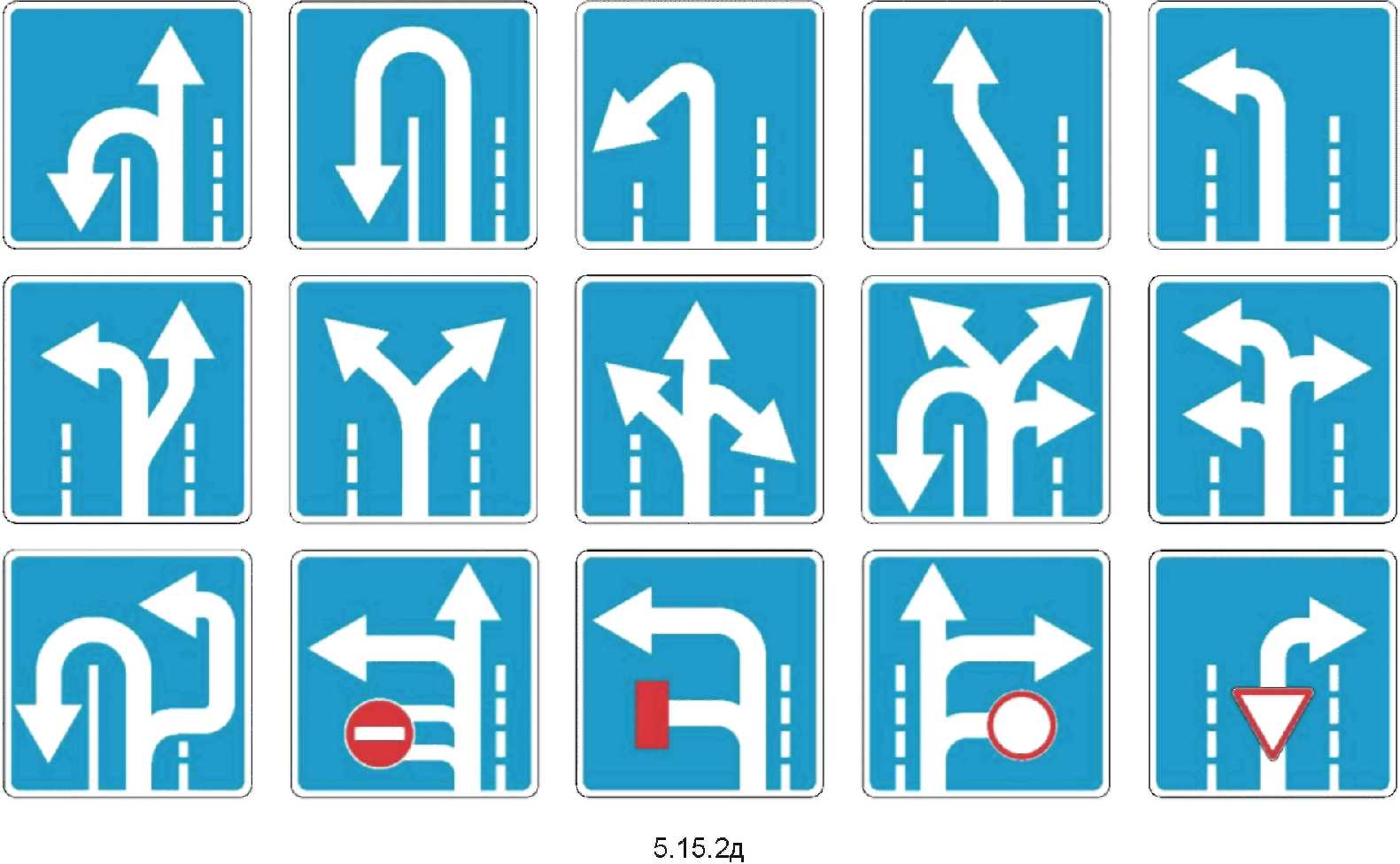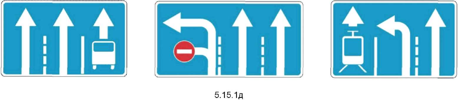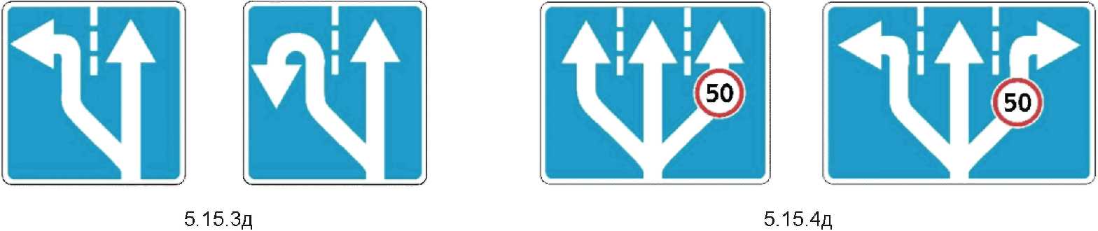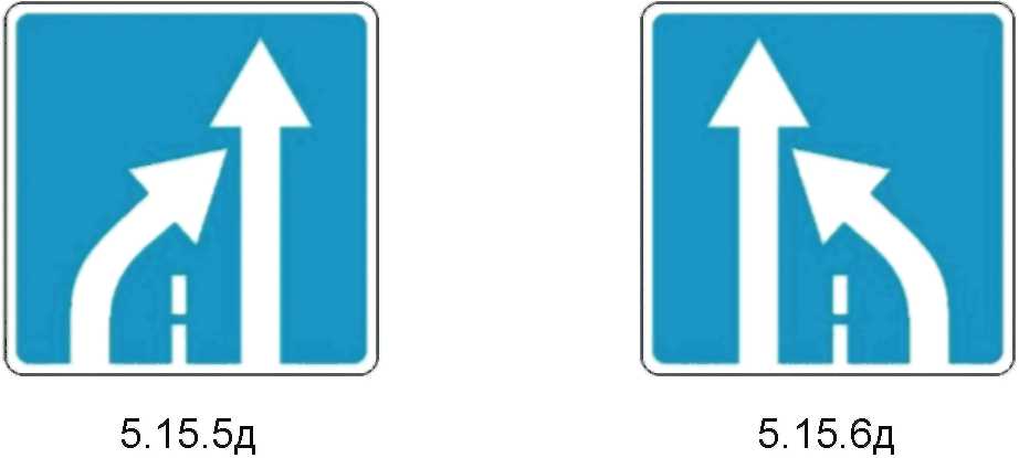 2  | 5.15.2д Направление движения по полосе Информируют водителя о разрешенных направлениях движения по отдельной полосе. Правила применения знаков аналогично п. 4.9 настоящего стандарта. |